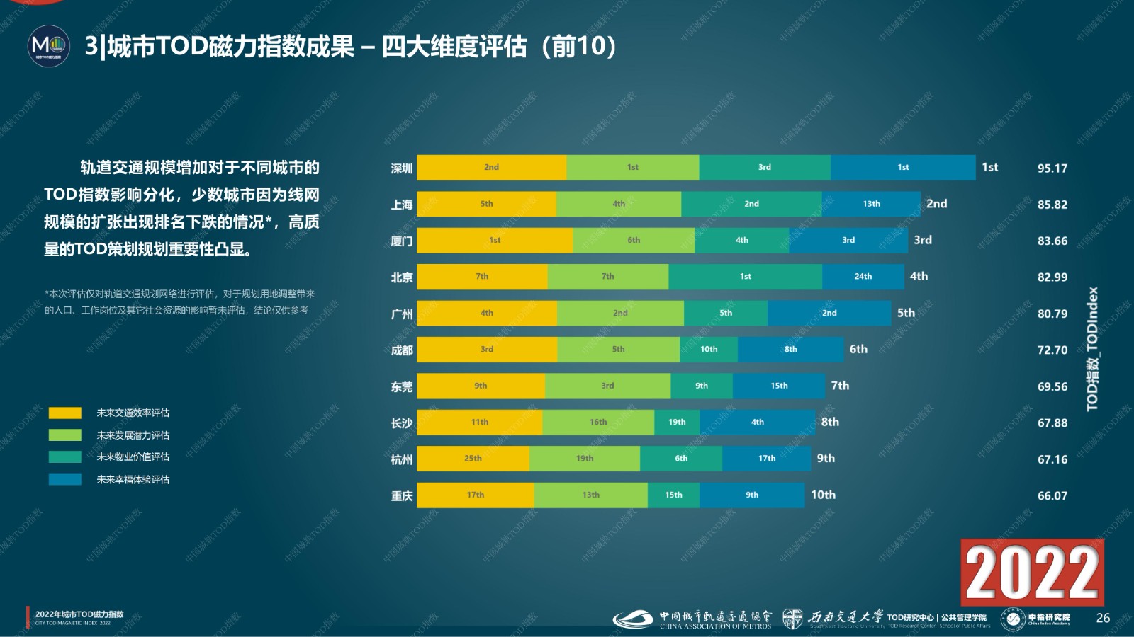 2022TOD指数按照站点-线路-城市3个层面的实际应用需求进行系统分析研究。预发布成果显示: